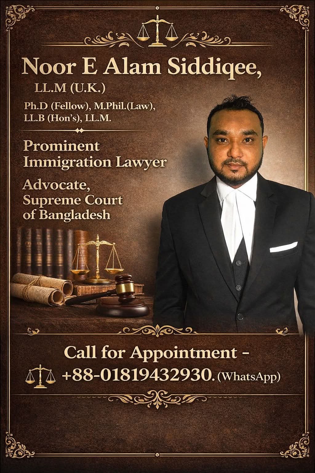 Siddiqee Law assisted me with my work permit and visa processing, and the experience was excellent. They provided clear guidance on documentation, embassy requirements, and legal compliance. Their knowledge of immigration law and international procedures made the entire process smooth and stress-free. Highly recommended for immigration legal services in Bangladesh.